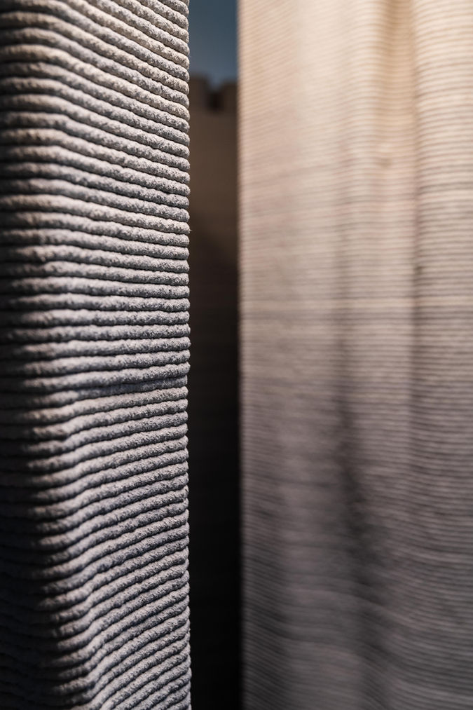 Biomimicry is applied in this design through a single-material strategy that mirrors nature’s efficiency using 3D-printed concrete to fulfill multiple functions at once. The material provides both structural strength and acoustic performance, with its mass blocking external noise and its ridged surface diffusing internal echoes. The spiral form, inspired by natural shell geometries, guides sound along a curved path, breaking direct noise lines and gradually lowering sound pressure as the corridor widens. This integrated approach eliminates the need for additional materials or finishes, reducing complexity, adhesives, and end-of-life waste.